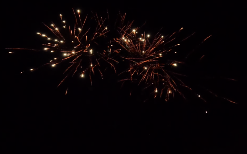 Den smukke kobberfarvede guld får nu tilsat sølv spidser, og begynder at brede sig mere og mere på himlen, i takt med at de affyrede vifter bliver større og større.