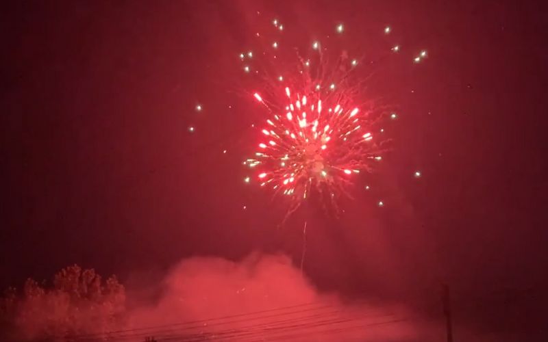 Effekter: Rød strobe, brokade med grøn strobe, sølv palme med crackling, rød wawe med hvid strobe, guld med rød strobe og brokade med hvid strobe