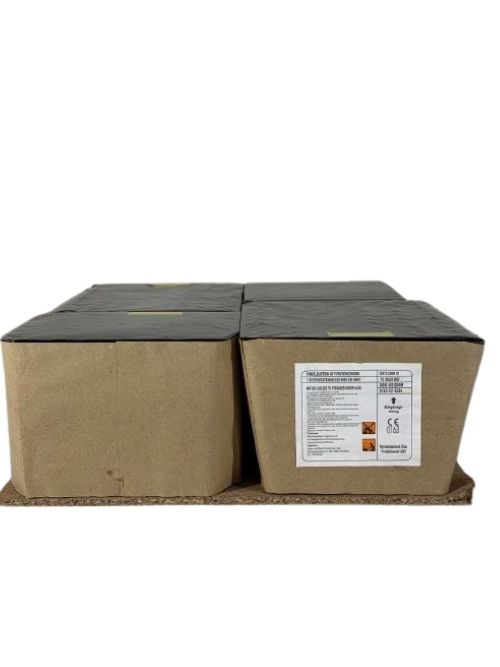 Til slut afskydes flere kavalkader af 3 forskellige bombetter med enten crackling, grøn strobe eller lilla stjerner, inden der til sidst affyres et stort løft af sølv palmer med hurtigt knitrende crackling.